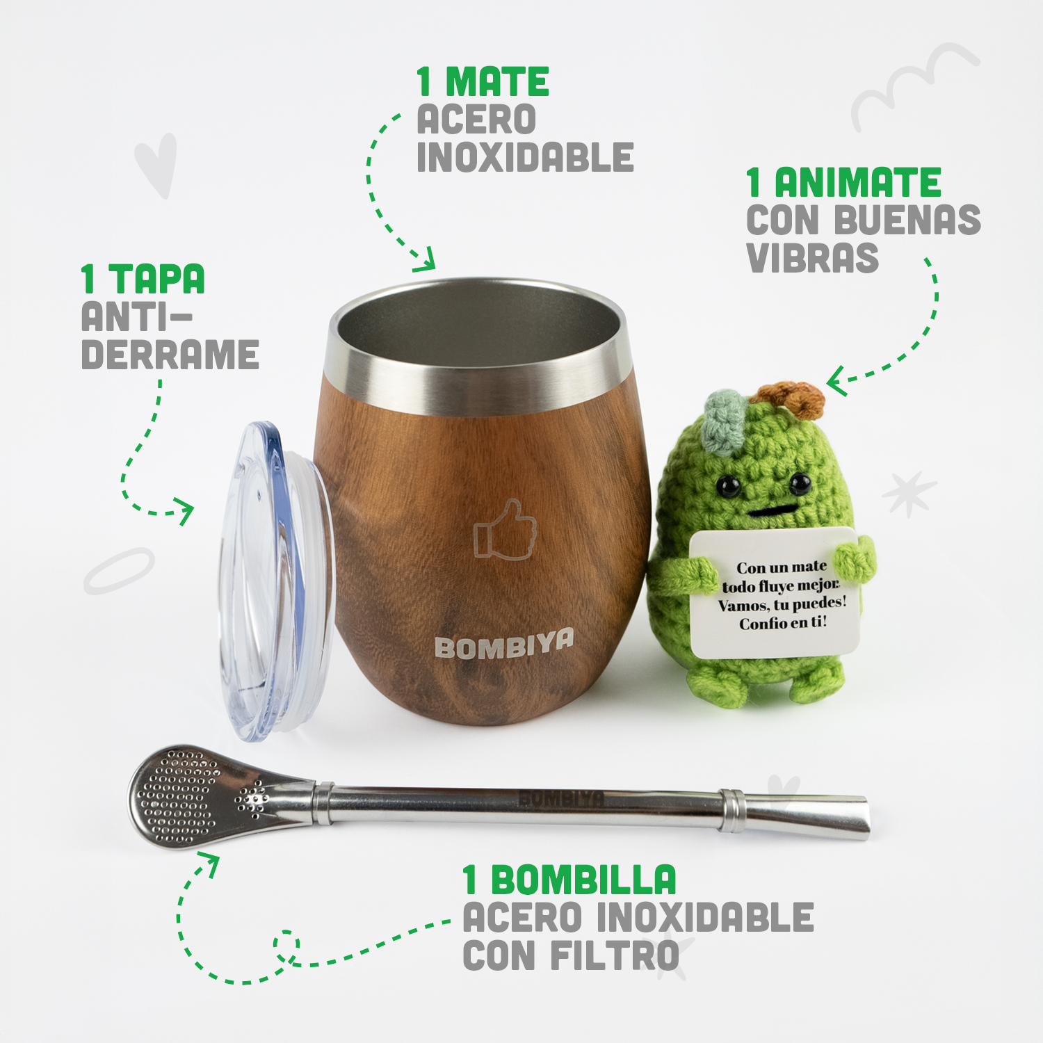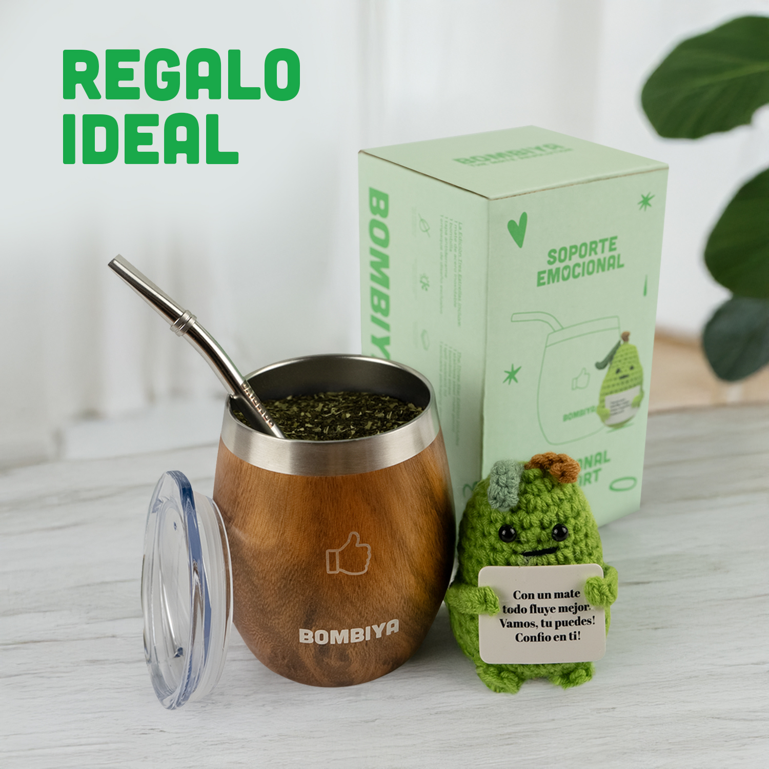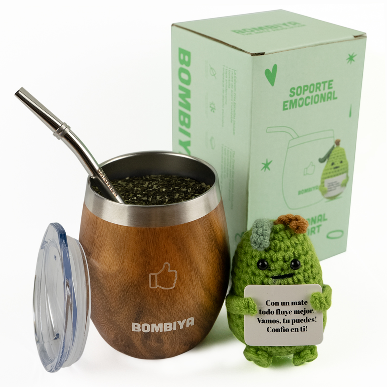 • Edición Soporte Emocional: Este set no es solo una herramienta para disfrutar del mate; es un símbolo de apoyo, alegría y unión. Incluye un adorable muñeco con un cartel inspirador, diseñado para transmitir mensajes de ánimo y calidez a quien lo recibe.